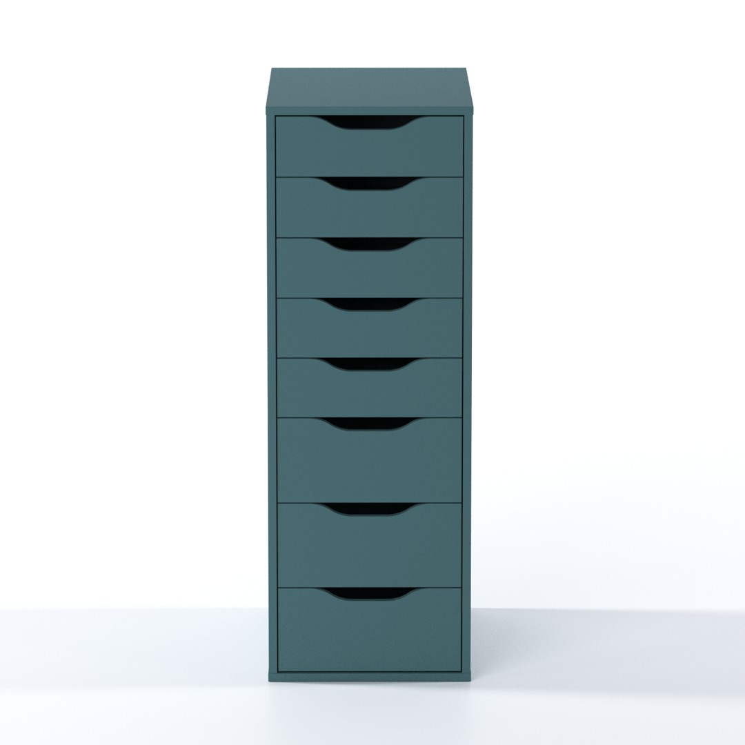 Технология пигмент. • Лаконичный, простой стиль. • Выступает как самостоятельный предмет интерьера, так и в качестве опоры для столешницы.. • Задняя стенка обработана, можно использовать отдельно стоящим в комнате, а не только около стены. • Восемь плавно выдвижных ящиков. • Вырезные ручки придают характер элементам ящиков, облегчают захват и открывание ящиков. • Легко комбинируется с другими предметами интерьера. • Подробная инструкция, легкая сборка. • Экологичность и высокое качество окраски (экологически безопасные материалы).