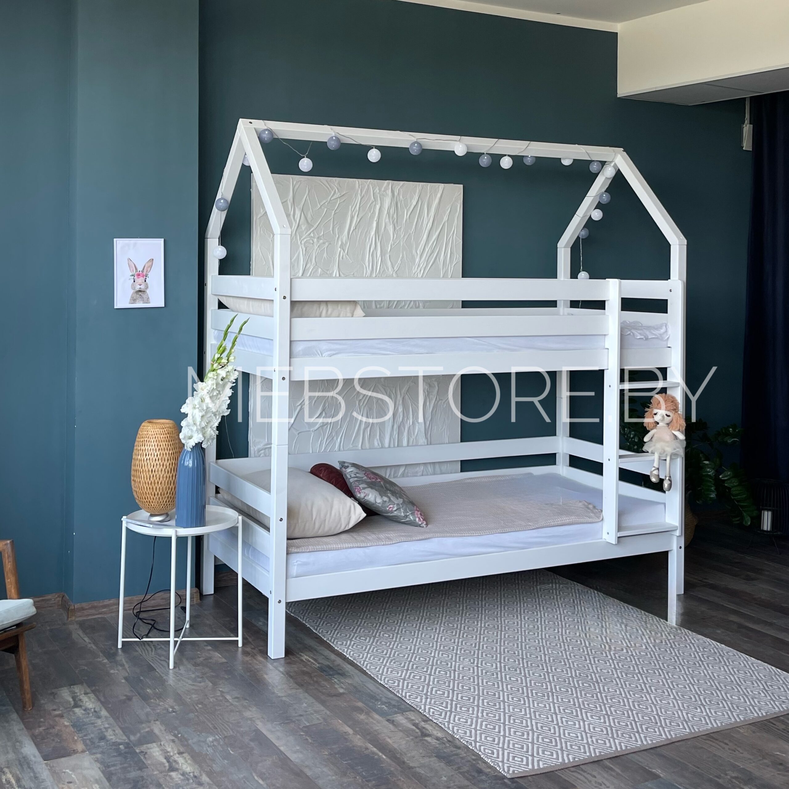 Двухъярусная кровать-домик «Мальта» из массива сосны 80×180, 90Х200 (без ящиков)