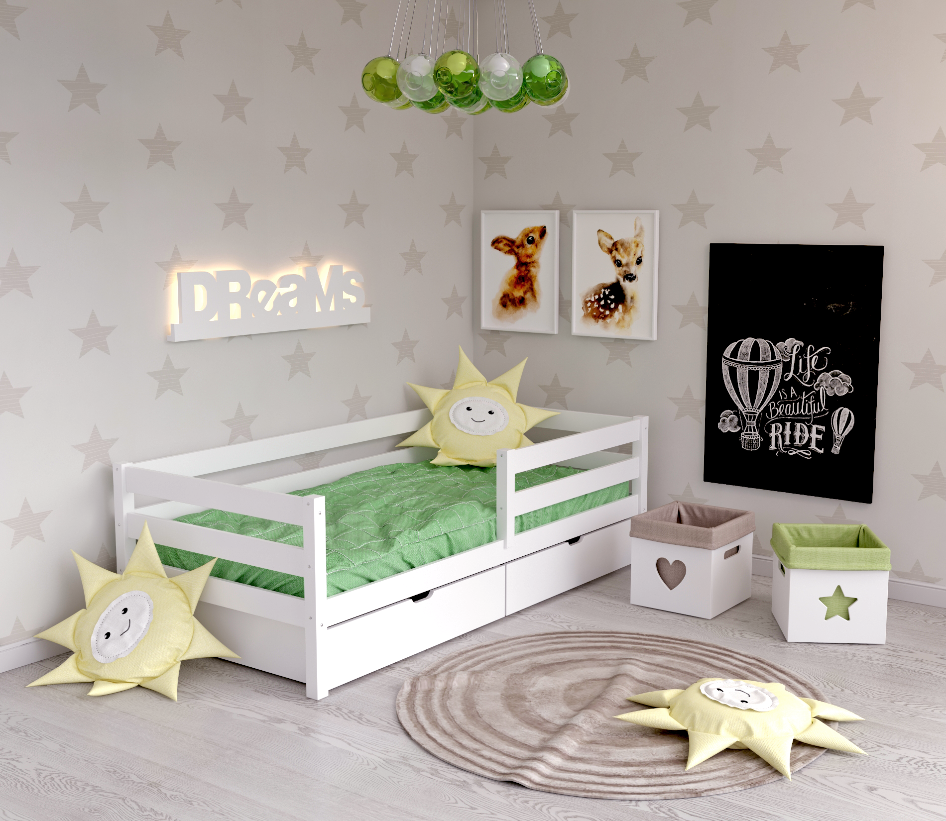 Односпальная кровать «Эрни Литтл» 70×140, 80×160,80×180,90×200 (с лесенкой)