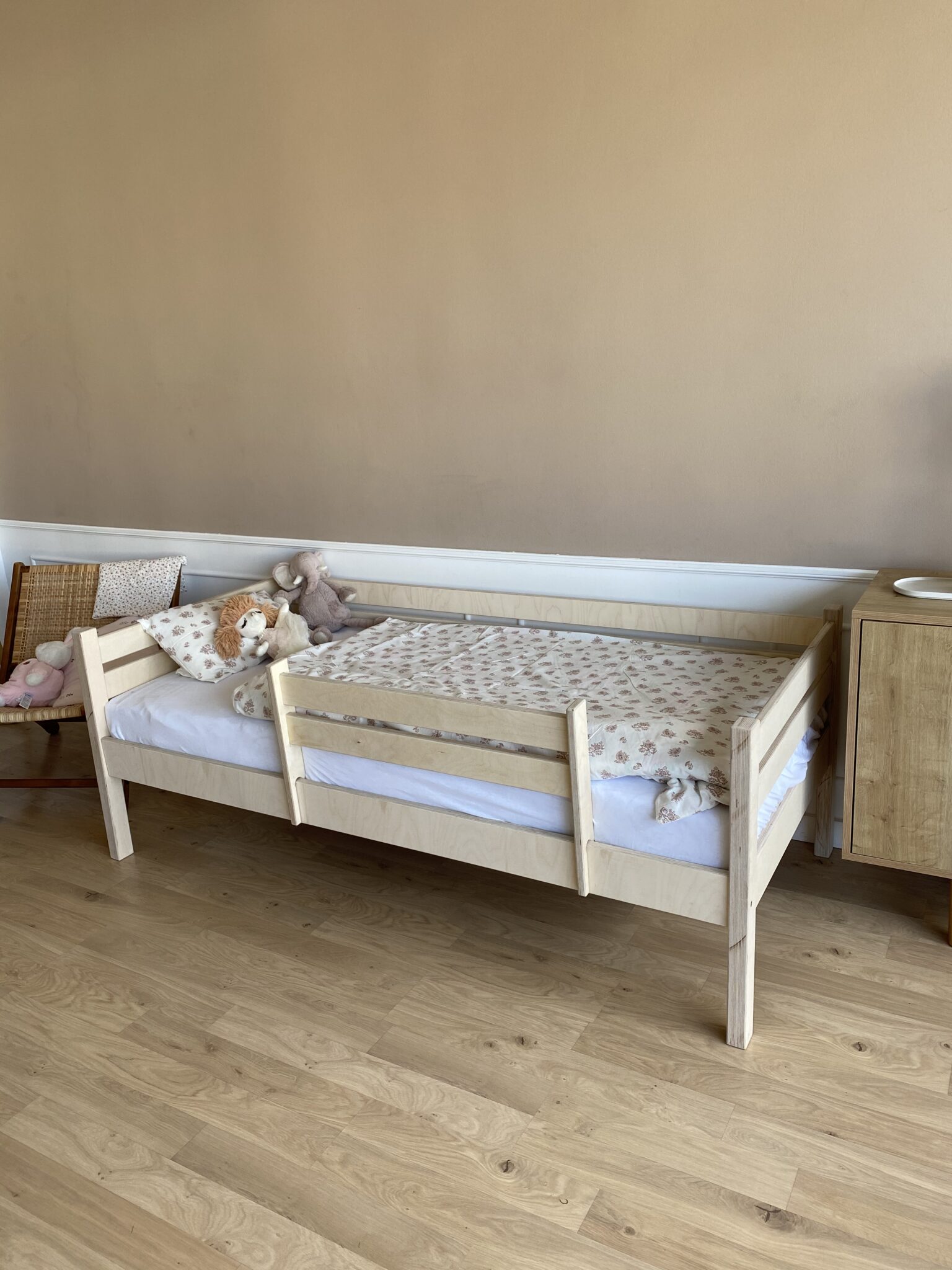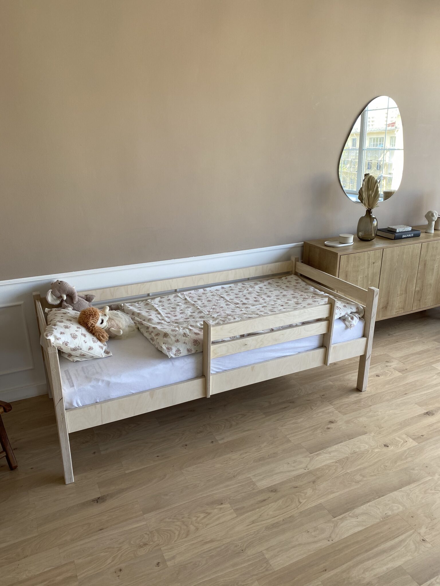 Кровать ROSTIK из березовой фанеры c бортиком (лак) (Без ЯЩИКОВ )