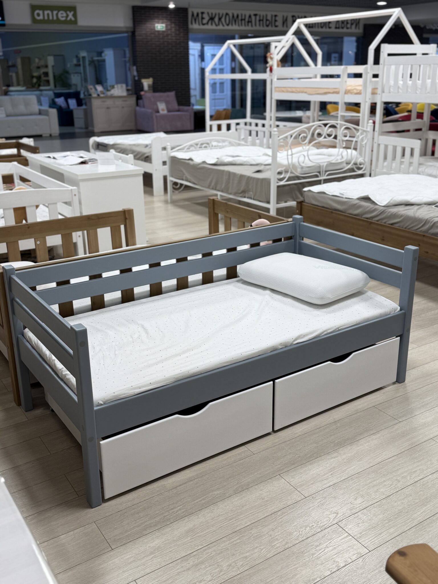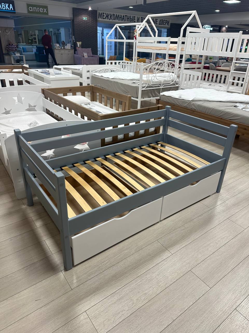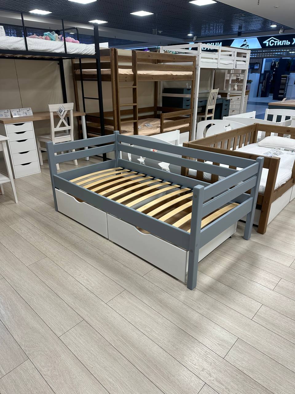 Кровать ROSTIK из березовой фанеры с ящиками(серый цвет) (Без борта )
