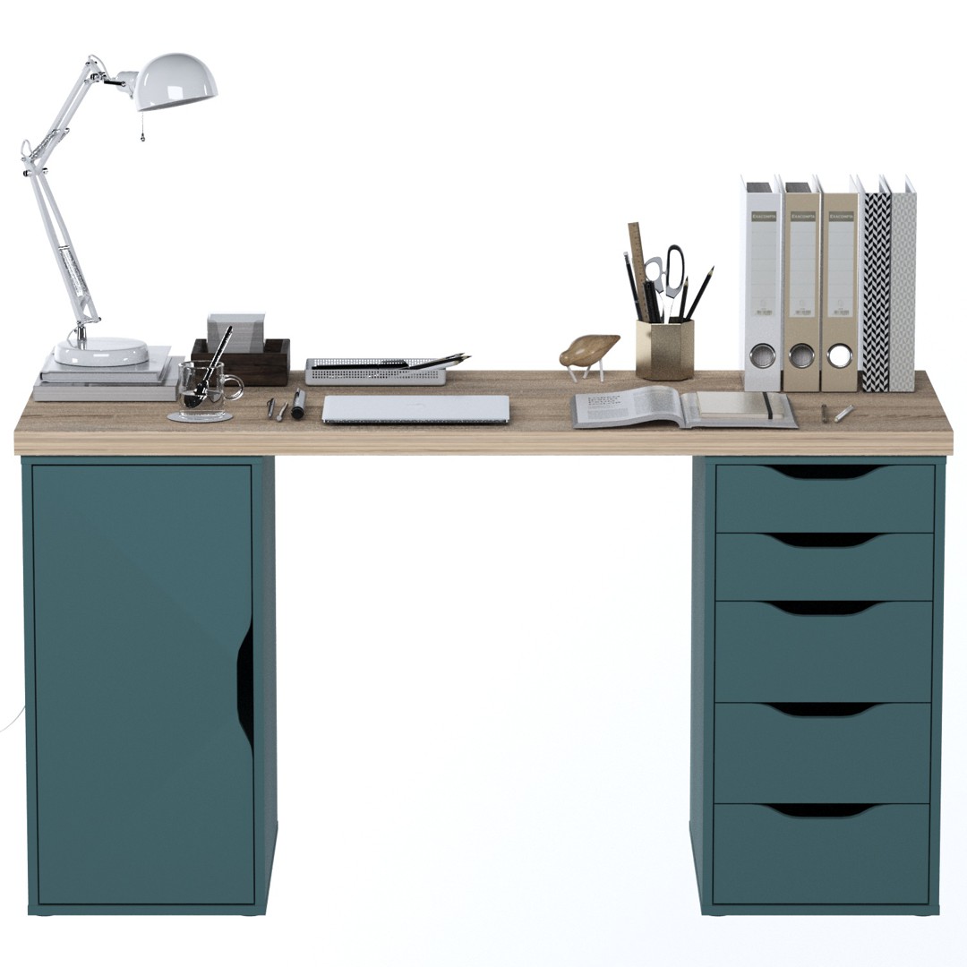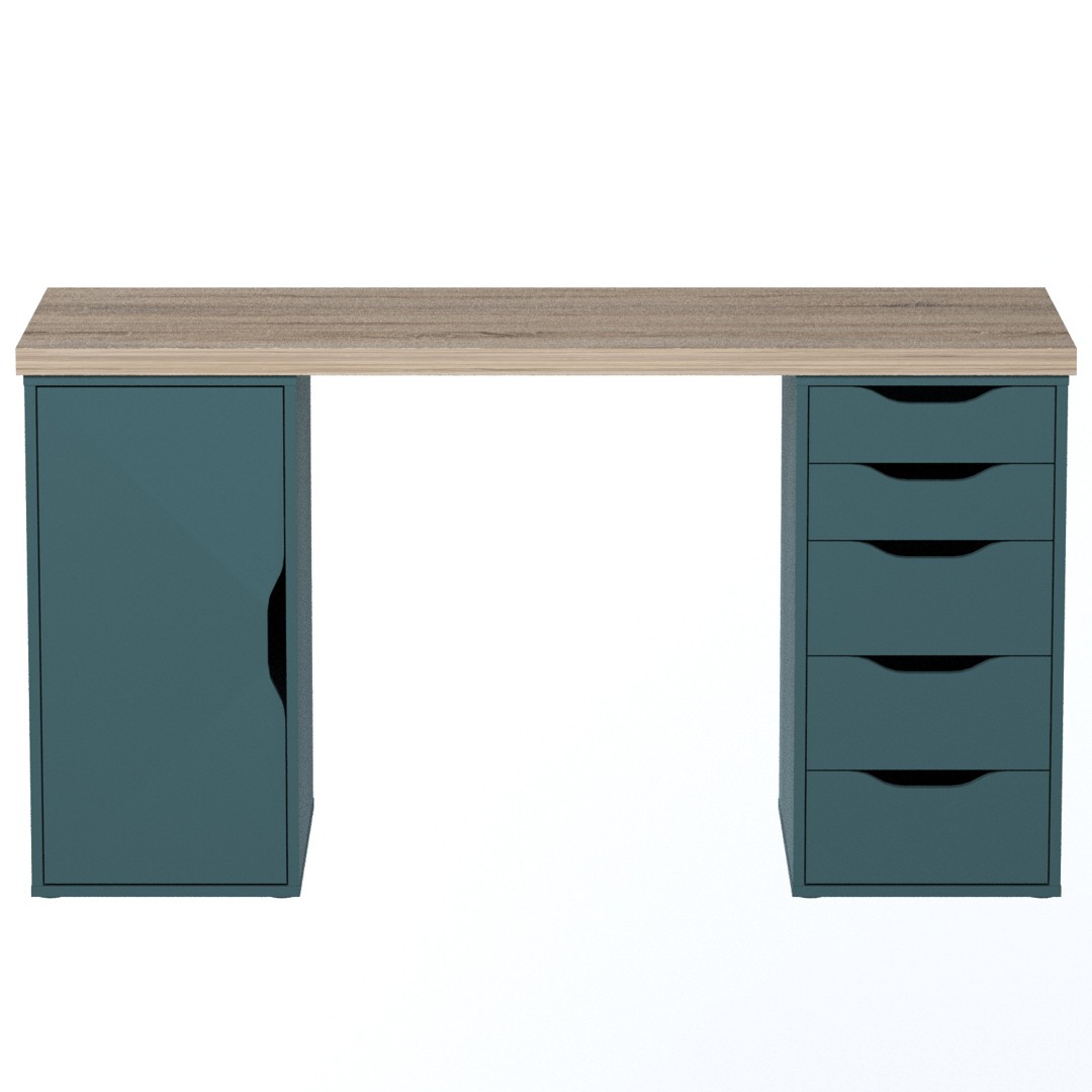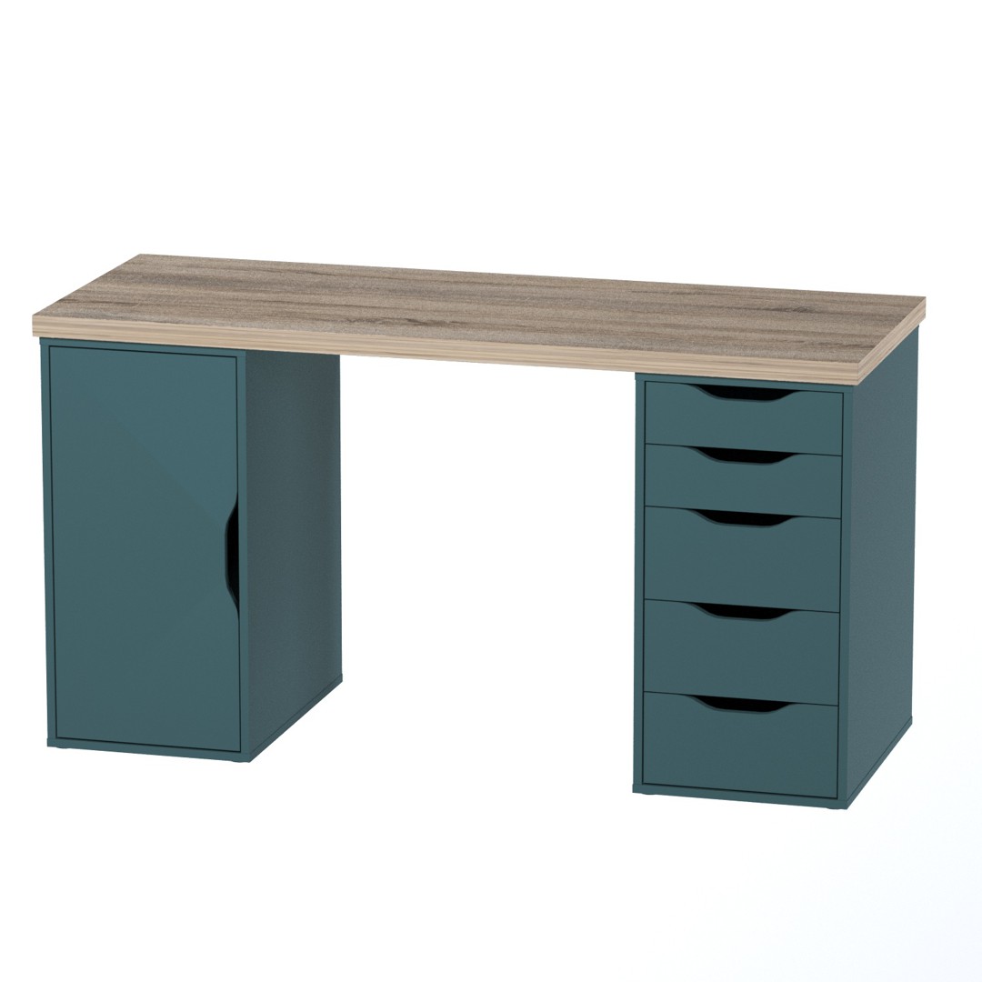 Стол письменный ИНГАР 2/5/ДВ дуб беленый/серо-бирюзовый арт. 01613