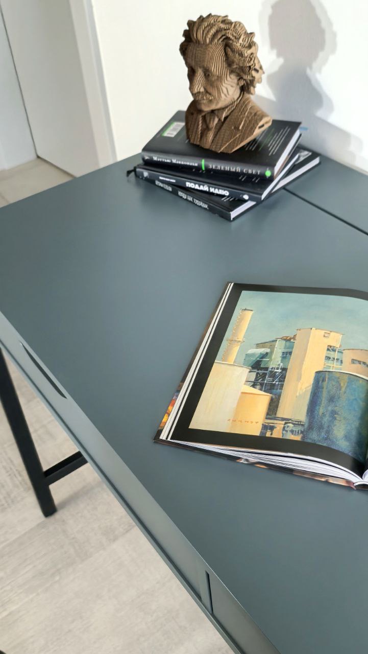 - Стол имеет аккуратно отделанную спинку, поэтому его можно разместить в любом месте комнаты.