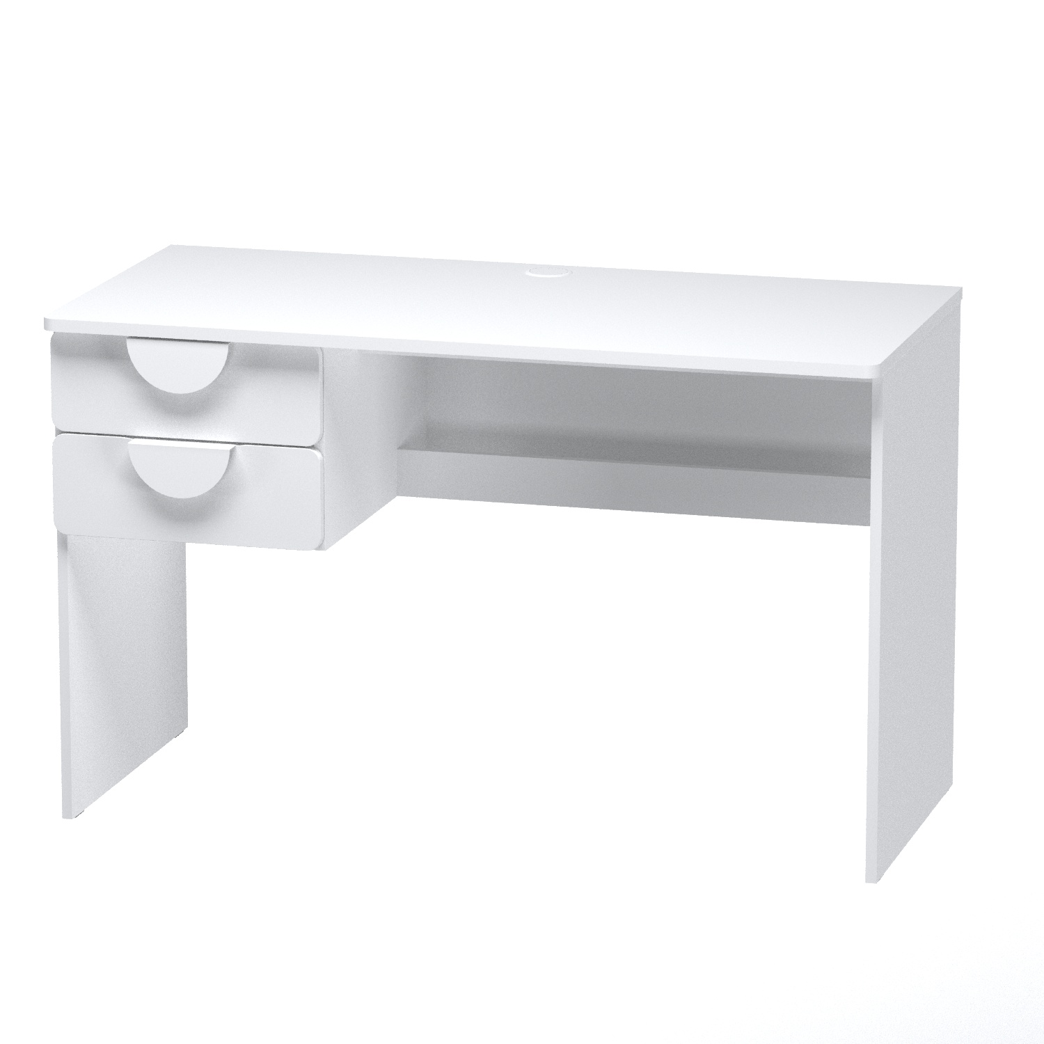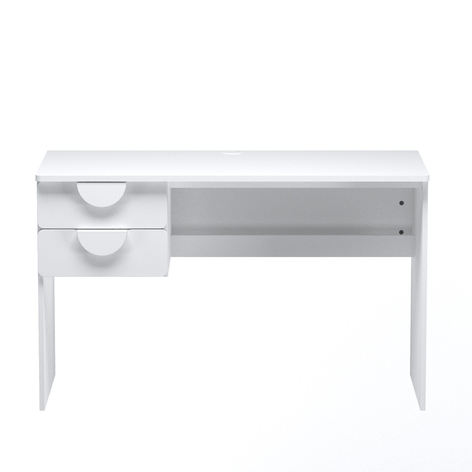 - Два вместительных ящика с доводчиками и направляющими скрытого монтажа — никаких лишних деталей, только плавность и тишина. Отверстие для проводов сверху и кабель-канал снизу — чтобы провода не мешались под ногами и всё было аккуратно.