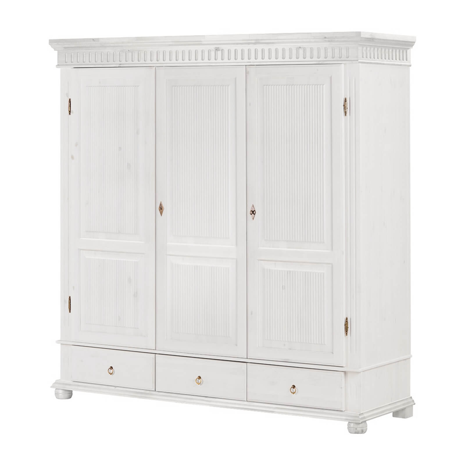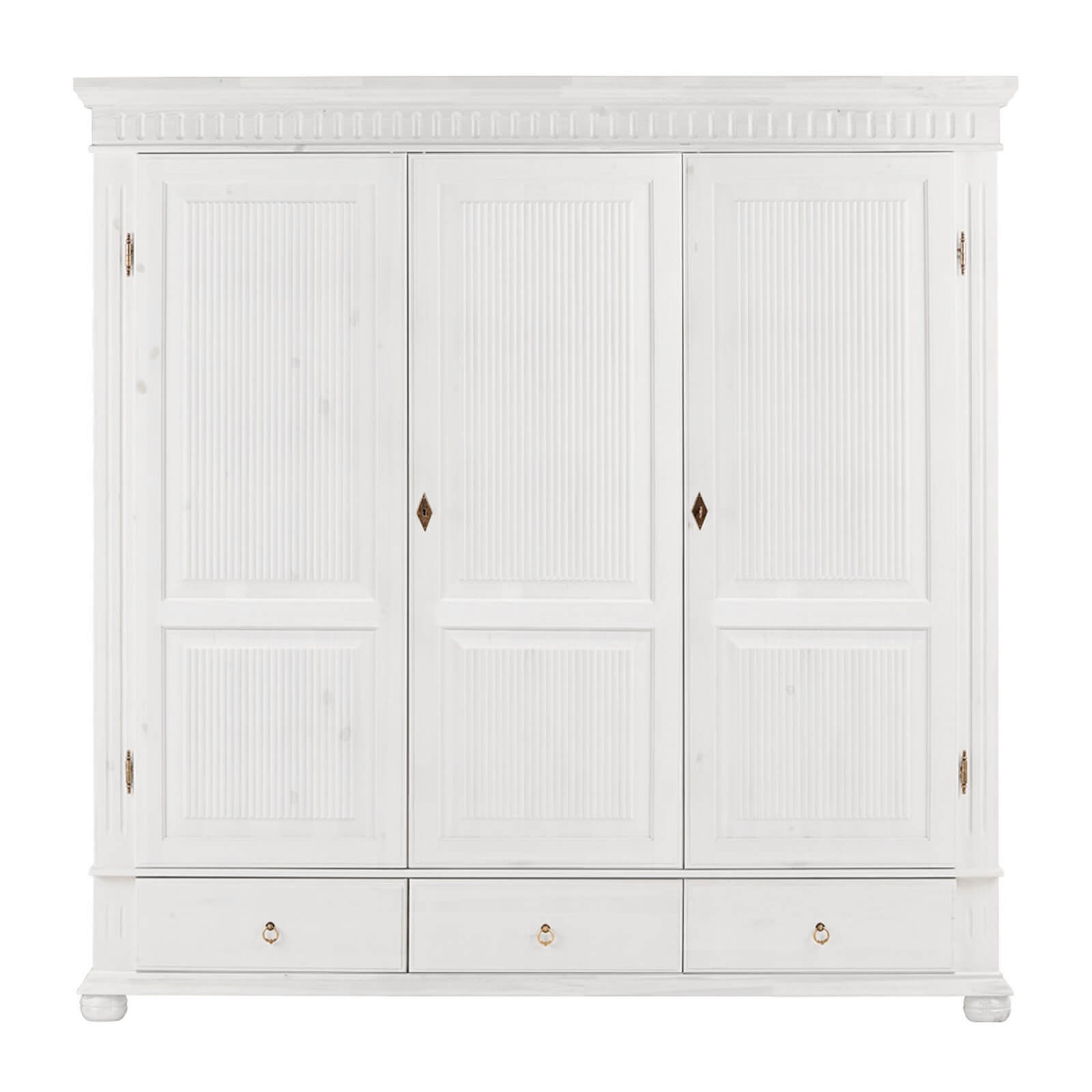 Шкаф Хельсинки 3GTM с тремя распашными дверями надежно сохранит ваши личные вещи от пыли, шерсти животных и других неприятностей. Его даже можно запереть на ключ. Внутри есть большая секция для одежды со штангой и секция поменьше с 4 полками, а внизу гармонично расположены 3 выдвижных ящика. .Есть возможность установить дополнительные полки.