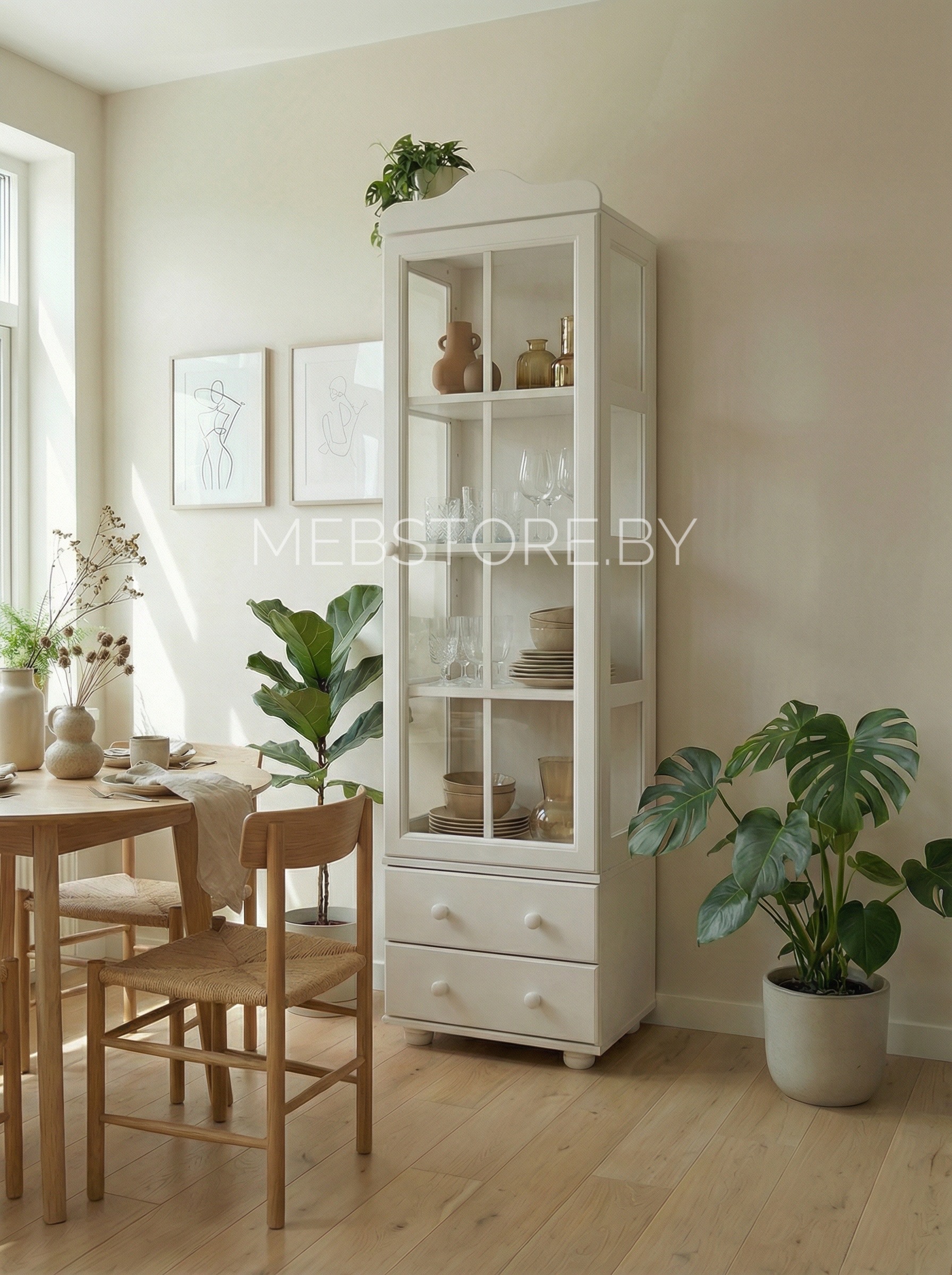Шкаф с витриной М-616М, 1-дверный белый цвет